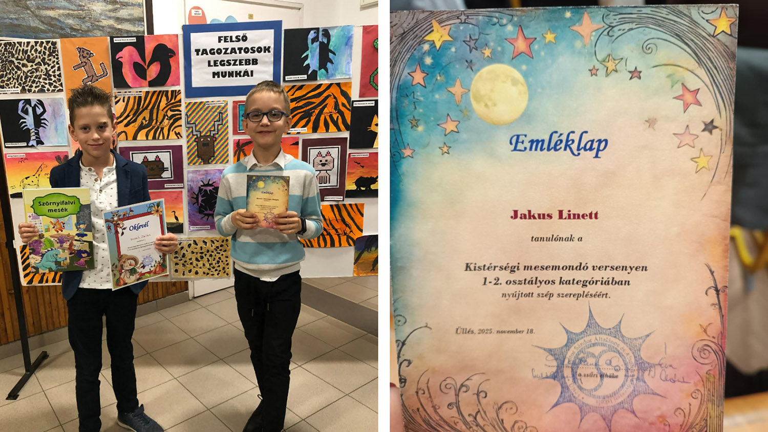 November 18-án tartották a kistérségi mesemondó versenyt, az Üllés, Forráskút, Csólyospálos Községi Általános Iskola és Alapfokú Művészeti Iskola Fontos Sándor Tagintézményében, Üllésen. Iskolánkból 1-2 évfolyamon Jakus Linett (1.b) indult, míg 3-4. évfolyamon Bozsik Zalán (3.c) és Kocsis-Savanya Mátyás (3.a) képviselte iskolánkat.