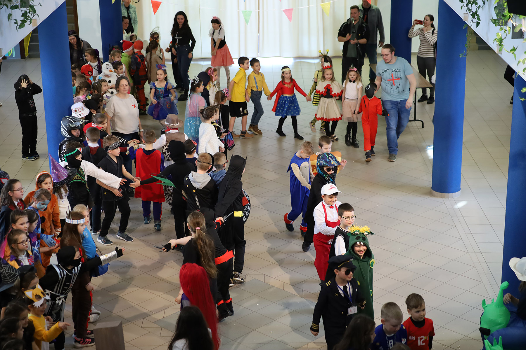 Február 13-án beköszöntött a farsang a Mórasuliba. A hatodik órai ráhangolódás, készülődés után 2 órától táncos-zenés mulatság várt az alsósokra az iskola farsangi díszbe öltözött aulájában. Az osztályok bemutathatták kreatív jelmezeiket vonatozás keretein belül, majd a felvonulás bizonyos kategóriák szerint folytatódott, amiből senki sem maradhatott ki. A limbó volt idén is a legnagyobb siker, melyet seprűtánc követett. A közös mulatozást Just dance játékkal zártuk, amelyet véleményem szerint, a kicsik és nagyok is egyaránt élveztek. A farsang ezután az osztályokban folytatódott játékokkal, tánccal és finomságokkal.