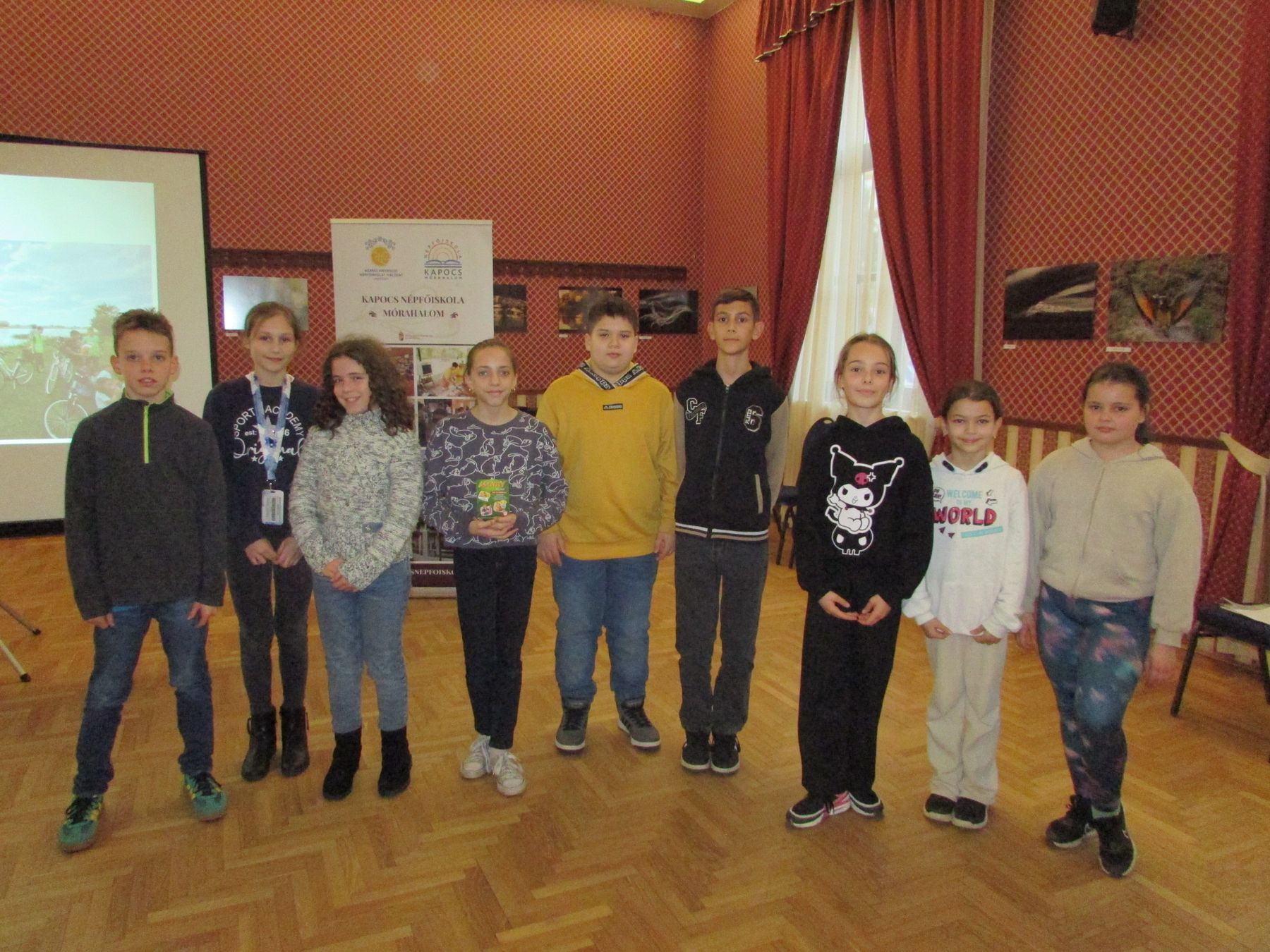 Az alsósok technika órákon egészségről beszélgettek majd plakátot készítettek, a felsősök szintén technika óráikon a hulladékcsökkentés lehetőségeivel foglalkoztak. Az erdőről, mint élőhelyről, rekreációs helyről, Bánhidy Zoltán az Alföldi ASzC Bedő Albert Erdészeti Technikum, Szakképző Iskola és Kollégium nevelőtanára mesélt, vetített. A SZTE Kossuth Zsuzsanna Technikum és Szakképző Iskola tanulói pedig 7-8. osztályosainkkal hitették el, hogy ők is lehetnek hősök, azaz menthetnek életet. És még nincs vége a heti programoknak, hiszen 27-én csütörtökön a Kapocs Népfőiskolával karöltve helytörténeti vetélkedőt szerveztünk a 4-8. osztályok 3 fős csapatainak. Az ügyesek közül a legügyesebbek voltak a 4.c osztály csapata: Hajdú Klaudia, Papp Luca, Paragi Regina, az 5.b osztály csapata: Gercsó Flóra, Juhász Viktória, Verba Csongor és a 7.a osztály csapata Horváth Hetti, Szabó Nándor, Vér Zétény Ferenc.